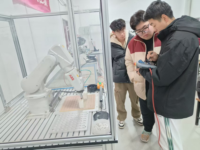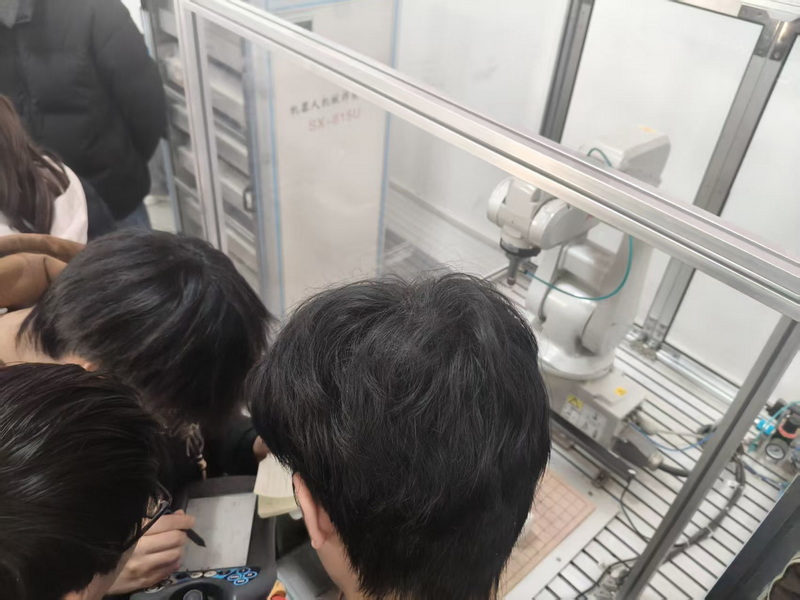 编程模块:机器人程序逻辑错误导致运动轨迹异常。解决方法:学生采用 “分段调试” 策略,逐段运行程序并观察运动状态,结合示教器的错误提示排查语法或逻辑问题,同学间相互审核程序代码。