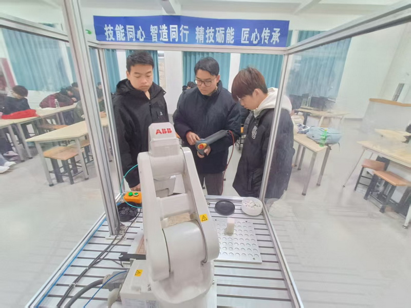 在实训过程中,学生不仅扎实掌握了两类设备的独立操作与编程技能,更通过协同实训体会到智能制造 “1+1>2” 的高效优势,深刻认识到跨领域技术融合的重要性。指导教师的针对性指导的关键,无论是数控机床的工艺优化,还是工业机器人的精准示教,亦或是两者的协同调试,都为学生答疑解惑,帮助其突破技术难点。