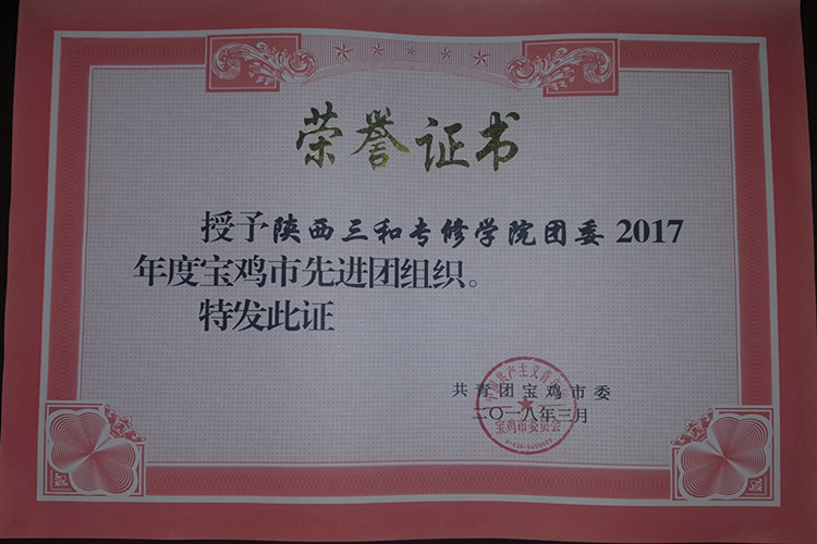 会议对共青团工作优秀县区、市直先进团组织、共青团员先锋岗(队)进行了表彰。我校团委被评为2017年度宝鸡市先进团组织。