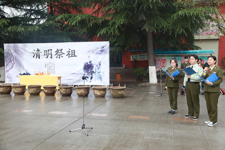 2018年4月5日,在学校领导的倡导下,由学校团委组织全院师生参与了清明节祭祖活动。活动于早晨8时20开始,以文明、高雅、有教育意义的方式过一个清明节,这也是每年的校园感恩活动之一,现场参与祭祖活动的师生2000余人。
