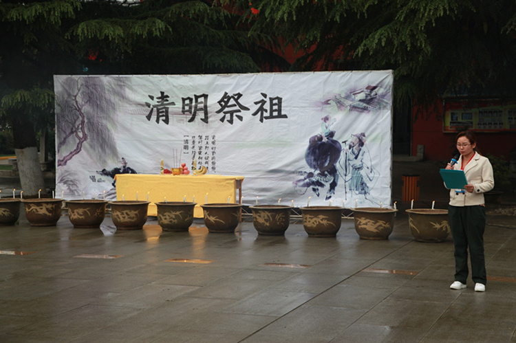 在古乐声中,学校师生依次向祭台上的华夏先祖牌位净手上香、敬献鲜花、供果、诗朗诵。此次清明祭祖一方面通过这个活动来表达对家乡逝去亲人的哀思,另一方面倡导学生继承和发扬革命烈士的精神和遗志,让烈士的精神薪火相传,也让学生们铭记历史,树立起正确的人生观和价值观。