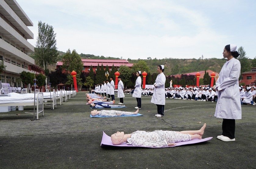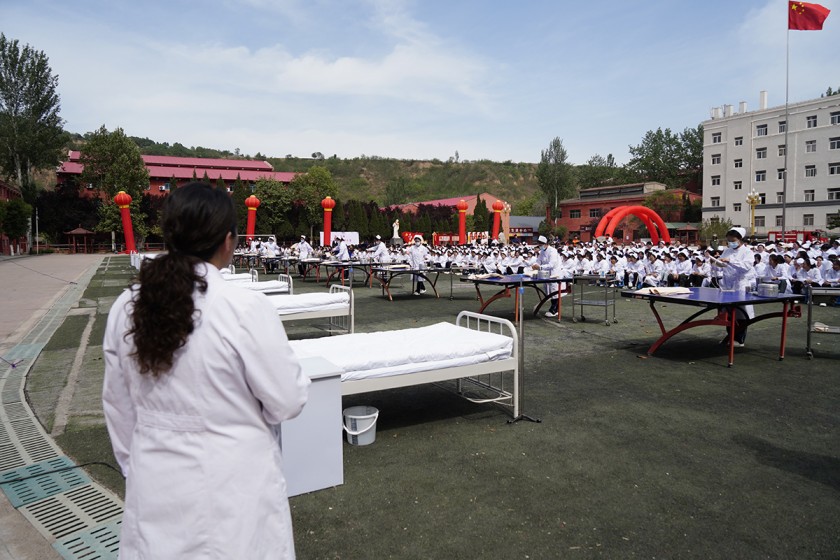 启动仪式上,来自护理、消防、铁道运营与管理等专业的同学们依次进行技能展演。护理专业的同学以模拟病房为依托,通过静脉输液、心肺复苏、伤口包扎等科目展示了未来护士们过硬的实操能力,他们的动作轻柔、熟练,每一个操作步骤都规范严谨,赢得了广泛好评。消防专业的同学携带消防装备,模拟火灾救援场景,熟练使用灭火器材进行灭火操作,在展示专业能力的同时,还向与会师生普及了消防安全知识。铁道交通运营管理专业的 同学身着统一制服,先后表演了手信号旗操作和列车前进、减速、停车等关键指令传递,生动呈现了"信号就是命令,标准就是生命"的职业信念。