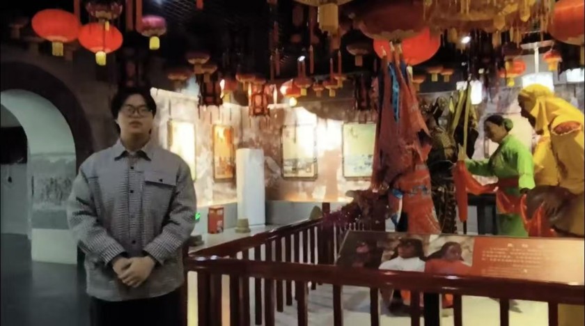 活动现场,同学们在老师的引导下有序探索展厅:从宝鸡传统民俗器物的历史渊源,到非遗技艺的传承脉络,大家边聆听场馆解说、边记录文化要点,沉浸式触摸本土民俗的文化内核。进入讲解练习环节后,同学们分组认领展项,结合课堂所学的导游话术、讲解逻辑,尝试进行现场解说展示;赵鹏宇、易露老师全程跟进,从语言节奏、内容适配性等维度给予针对性指导,助力大家将理论知识落地为实操技能。