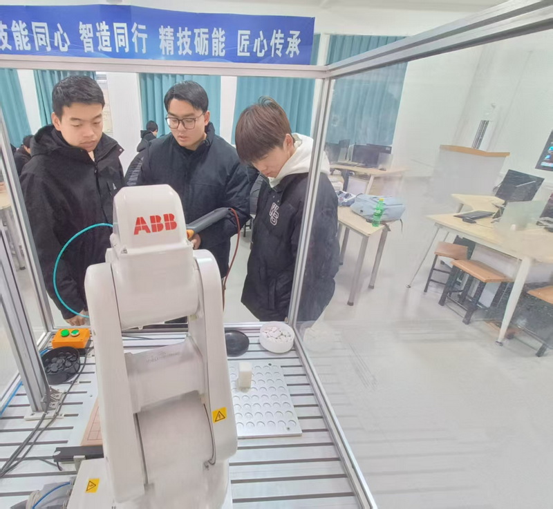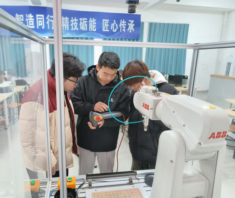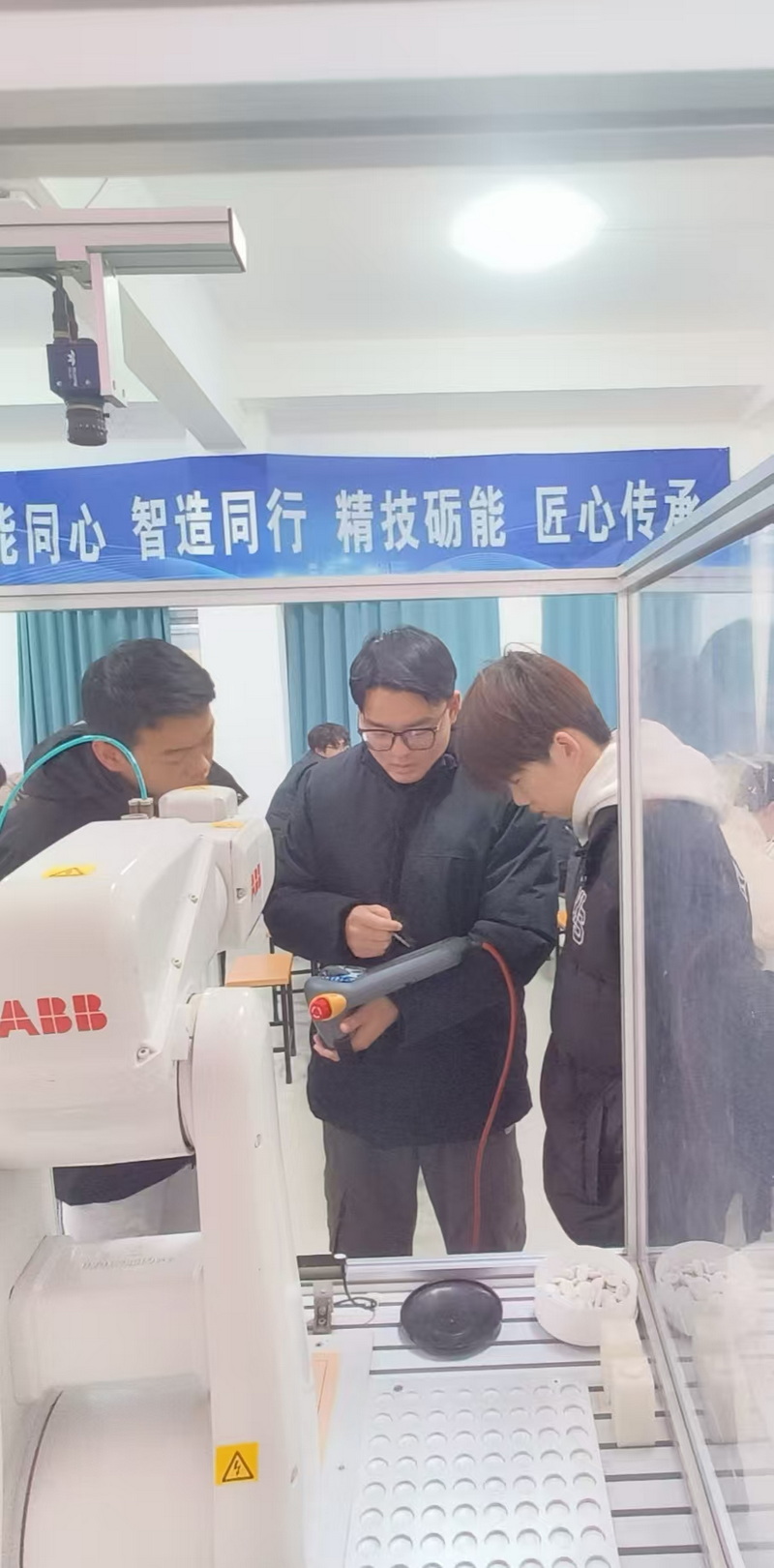 在实训过程中,学生不仅扎实掌握了两类设备的独立操作与编程技能,更通过协同实训体会到智能制造 “1+1>2” 的高效优势,深刻认识到跨领域技术融合的重要性。指导教师的针对性指导的关键,无论是数控机床的工艺优化,还是工业机器人的精准示教,亦或是两者的协同调试,都为学生答疑解惑,帮助其突破技术难点。