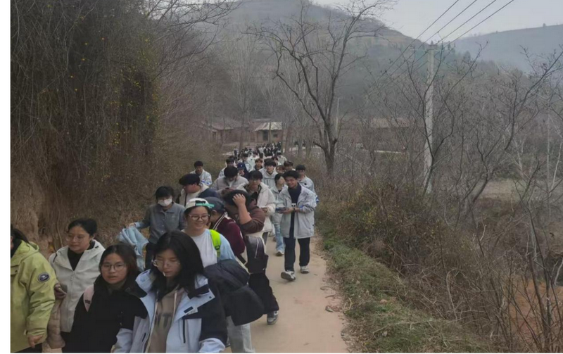 活动当日,全体师生在学校东门准时集合,整队出发。出发前,带队教师就活动纪律、行进路线、安全注意事项等内容进行全面强调,明确责任分工,确保活动安全有序开展。随着出发指令下达,登山队伍精神抖擞、步伐整齐,沿着翟家坡村小道步行来回约5公里上山,全程来回用时1小时40分钟。山间风景秀丽、空气清新,全体学生纪律严明、文明登山,途中相互照应、彼此鼓励,面对陡坡路段主动帮扶,充分展现了新时代青少年良好的精神风貌与团结精神。