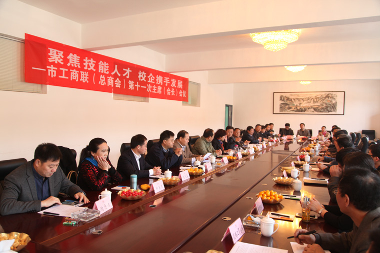 3月20日,宝鸡市工商联(总商会)以“聚焦技能人才,校企携手发展”为主题,十余家企业及教育单位莅临我校参观指导工作,并在我校召开了第十一次主席会议,会议重点围绕校企合作和技能人才进行了研讨。市工商联主席、市总商会会长和惠敏主持会议并做总结讲话。