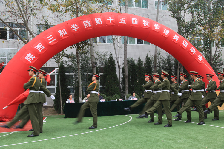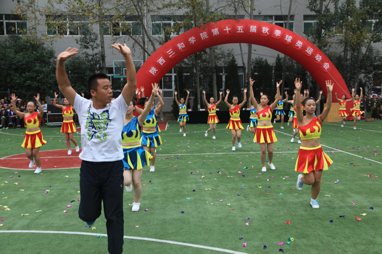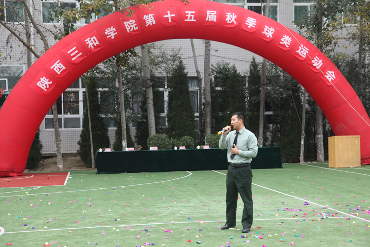 2015年10月23日上午9:00整,沐浴着朝阳,开幕式正式开始,伴随着热烈的运动会进行曲,方阵在校旗队、彩旗队的引领下,昂首步入会场。各分院、各部门的代表队在行进中进行特色展示,嘹亮的口号、整齐的队伍,精彩纷呈的表演彰显出了青春风采和高昂斗志。庄严的升旗仪式后,周教授致开幕词。她代表学校对校运会的胜利召开表示热烈的祝贺,对精心筹备运动会的工作人员表示诚挚的感谢,并向全体运动员、裁判员致以亲切的问候和美好的祝愿。她指出,学校一路走来经历了风风雨雨,年年举办校运动会,秉承的就是一个信念:为了每一个孩子的健康,为了每一个学生的未来。把学生的健康放在第一位,把增强学生体质,增强学生能力放在第一位,是值得赞扬和鼓励的。她希望,学校能继续发扬“更快、更高、更强”和“团结、友谊、进步”的奥林匹克精神,把校运会办成隆重、热烈、充满活力的体育盛会,争取运动成绩和精神文明双丰收!随后,裁判员代表及比赛选手代表宣誓并由石书记宣布:“陕西三和职业中等专业学校第十五届球类运动会正式开始”!,同时,还有精彩的文艺演出,赢来同学们的阵阵掌声。最后在教工组篮球友谊赛的比赛中,本次球类运动会正式拉开帷幕。