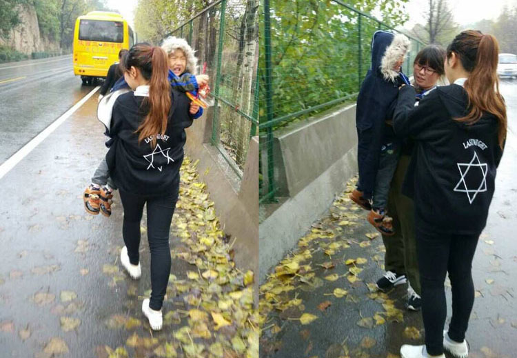 11月7日上午,学校14级护理8班的学生乘校车去宝鸡市区实践,经过宝鸡市金台区石桥附近时,发现路上有个小男孩独自行走,当时下着雨,男孩衣着单薄没打伞。校车司机张成林果断停车,让8班班长潘豆将孩子抱上车。经询问,孩子4岁,妈妈去上班了,他想妈妈了,他便一人出门找妈妈,但他说不清妈妈在哪儿上班。张成林将校车开到了宝鸡市公安局金台分局宝平路派出所,将走丢的孩子交给民警。最终民警走访两个多小时终于找到孩子家人。