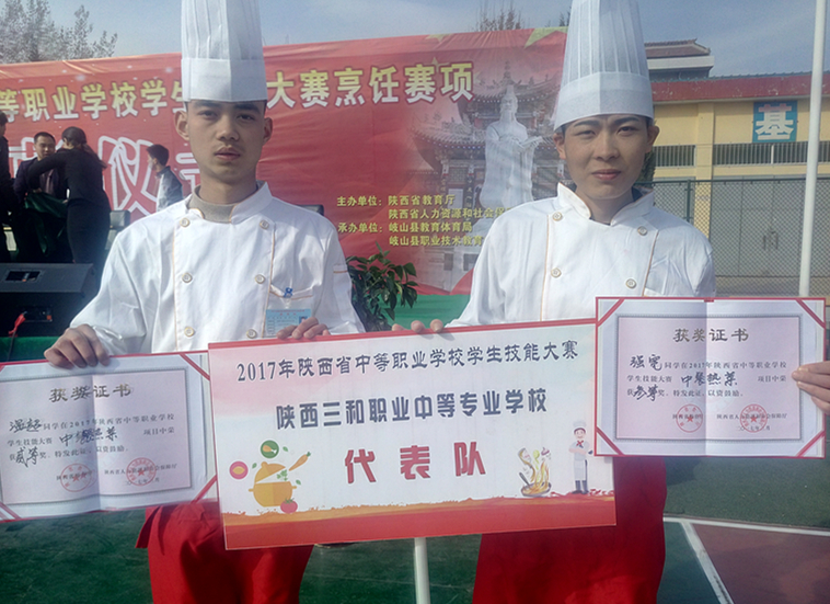 2017年3月2日,陕西省中等职业学校学生技能大赛烹饪赛项比赛在宝鸡市岐山县职教中心圆满闭幕。省教育厅职成处副处长付仲峰、省教科所职教研究室副主任高居红、市教育局调研员应保全、市教育局职成教科科长李宝成、岐山县教育体育局局长杨周雅、副局长杨剑钧出席闭幕式。来自全省24所学校的119名选手参加了比赛,最终经过激励角逐,学校带队教师成晓强精心指导,我校选手温超荣获二等奖、强宽荣获三等奖。