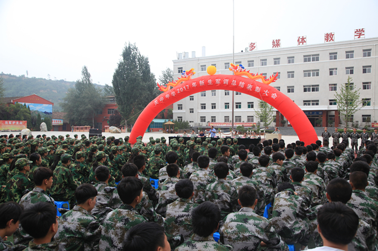 关中中学2017届新生军训于8月11日正式开始,按计划圆满完成预定训练任务,8月18日下午4:00在陕西三和职业中等专业学校举行军训会操表演暨总结表彰大会。三和教育集团董事长王建民出席表彰大会并发表热情洋溢的讲话。