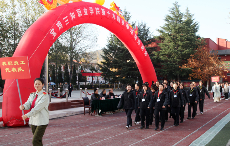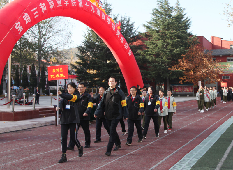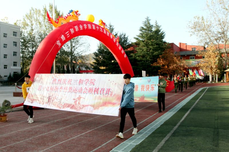 伴随着激昂的运动员进行曲,彩旗方阵、裁判员方阵、教职工方阵及各专业阵依次入场。英武飒爽的英姿,清脆嘹亮的口号,师生们迈着整齐的步伐展示着三和人蓬勃向上的风采,场上掌声阵阵,欢呼不断。