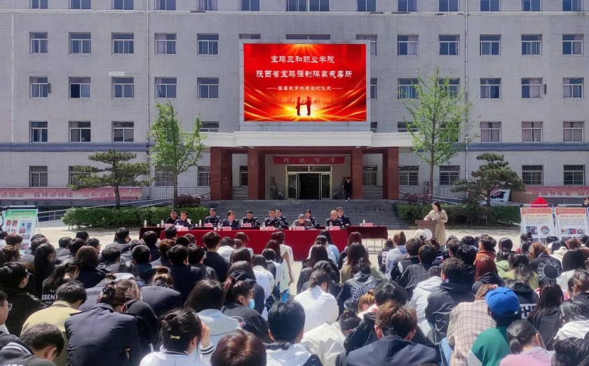 学院党支部副书记王曙致辞,宝鸡三和职业学院与陕西省宝鸡强制隔离戒毒所禁毒教育共建单位签约揭牌仪式是建设平安校园的一项重要举措。大学生在禁毒教育中起着至关重要的地位,全体师生要深刻认识到涉毒的后果和抵制毒品诱惑的重要性,筑牢在校师生的思想防线,营造了平安校园,全民禁毒的良好氛围。