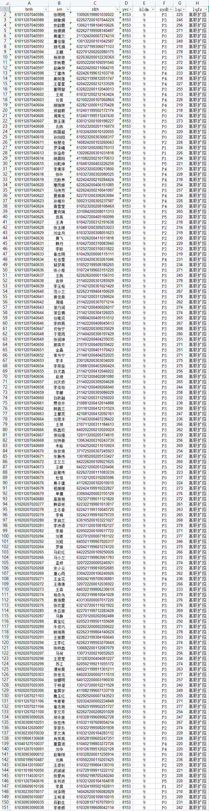 宝鸡三和职业学院2021年高职扩招预录取名单